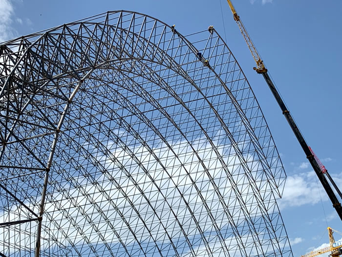 (2)网架加工前应对现场尺寸进行复测,确认无误后方可进行加工、安装;网架制作、运输、安装应遵守《空间网格结构技术规程》JGJ7-2010、《钢网架黄石螺栓球节点》JG/T 10-2009、《钢网架黄石螺栓球节点用高强度螺栓》 GB/T 16939-2016、《黄石钢结构黄石工程黄石施工规范》 GB50755-2012、《黄石钢结构黄石工程黄石施工质量验收标准》 GB50205-2020。